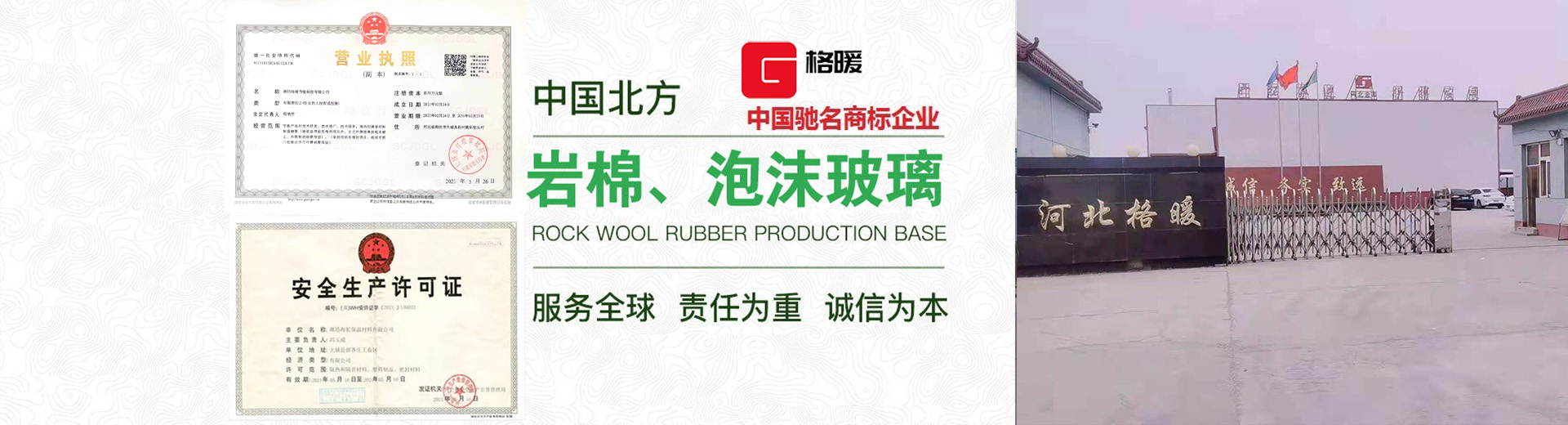 廊坊格暖節能科技有限公司 地處河北廊坊大城縣權村工業區,是集研發、生產和銷售于一體的大型企業,擁有11年保溫建材行業生產經驗,公司產品齊全,其中泡沫玻璃制品包括:泡沫玻璃保溫板、泡沫玻璃保溫管、泡沫玻璃保溫磚;巖棉制品包括:巖棉板、復合巖棉板、外墻巖棉板、巖棉氈、巖棉條、巖棉管等保溫材料。        產品廣泛應用于地鐵、樓房屋頂、外墻防火隔離帶、石化、發電、航天、 鋼鐵、煉油、乙烯等行業的保冷、防腐、工程中。采用世界先進的設備,成熟的工藝生產,智能化操控,廢棄物循環利用,產品質量超過美國ASTM標準, 公司年產量50萬立方米的泡沫玻璃,80萬立方米橡···